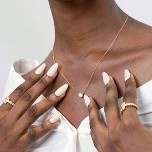 Delve into the captivating charm of our gem necklace. The gleaming gemstone mirrors your unparalleled individuality with grace and charm. The perfect everyday necklace.