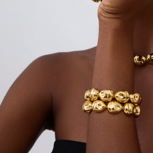 Ere means "sculpture" in Yoruba, the language spoken by Nigerians from the west. The design was inspired by Yoruba sculpture and this piece challenges the notion that bold is too much. The Ere bracelet strikes the perfect balance of beauty, elegance, and boldness. We challenge you to bet on yourself and be bold.